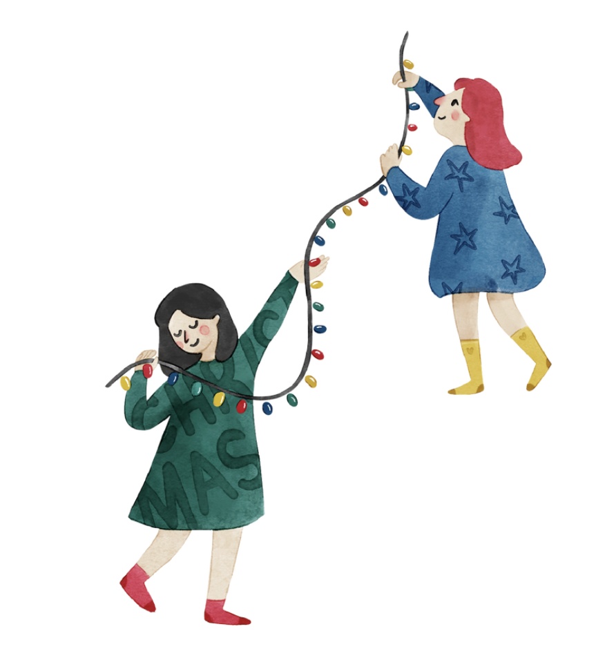 My sister had a knack for doing that, so I kept out of her way, holding the beads behind her as she expertly wove it through all the branches. Once that was done we could have fun with the rest of the decorations. We helped each other space out all the decorations so that nothing overlapped. Finally, after hours of working on the tree, we went around the tree one last time with the Christmas lights. After putting away all the boxes, we sat down next to the Christmas tree, under the Christmas lights, eating freshly baked cake, laughing about the time I got tangled in the string of beads.